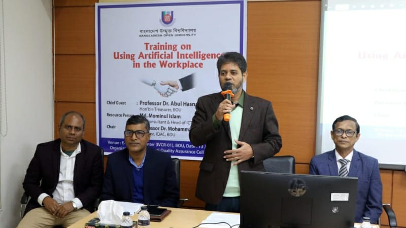 এআই ব্যবহারের মাধ্যমে প্রশাসন, মানবসম্পদ ব্যবস্থাপনা ও শিক্ষাখাতে সিদ্ধান্ত গ্রহণ আরও তথ্যভিত্তিক ও কার্যকর হচ্ছে। রুটিন কাজ স্বয়ংক্রিয় হওয়ায় কর্মীরা সৃজনশীল ও কৌশলগত কাজে বেশি সময় দিতে পারছেন। তবে চাকরি, তথ্যের গোপনীয়তা ও নৈতিকতার বিষয়ে সতর্ক থাকা অত্যন্ত গুরুত্বপূর্ণ। সঠিক নীতিমালা ও দক্ষ জনবল গড়ে তুললে এআই হবে আশীর্বাদ, অন্যথায় ঝুঁকি তৈরি করতে পারে। বাউবি-র মতো ওপেন অ্যান্ড ডিস্ট্যান্স লার্নিং প্রতিষ্ঠানে এআই ব্যবহারের মাধ্যমে শিক্ষার্থীদের অগ্রগতি বিশ্লেষণ, একাডেমিক সাপোর্ট প্রদান এবং প্রশাসনিক দক্ষতা বৃদ্ধি করে শিক্ষার মান উন্নয়ন সম্ভব, যা বিশ্ববিদ্যালয়ের লক্ষ্য অর্জনে গুরুত্বপূর্ণ ভূমিকা রাখবে। প্রশিক্ষণের উদ্বোধনী অনুষ্ঠানে সভাপতিত্ব করেন আইকিউএসি’র পরিচালক অধ্যাপক ড. মোহাম্মদ জহির রায়হান, যিনি বলেন, কৃত্রিম বুদ্ধিমত্তা শিক্ষা ও প্রশাসনে বাস্তবভাবে ব্যবহৃত একটি কার্যকর প্রযুক্তি, যা সিদ্ধান্ত গ্রহণে নির্ভুলতা, সময় ও ব্যয় সাশ্রয় এবং মানবসম্পদের দক্ষতা বাড়াচ্ছে। এটি মানুষের বিকল্প নয়, বরং মানবিক দক্ষতাকে আরও শক্তিশালী করে। তবে তথ্য নিরাপত্তা ও নৈতিকতার চ্যালেঞ্জ মোকাবিলায় প্রশিক্ষণ ও দায়িত্বশীল ব্যবহার অপরিহার্য। এই প্রশিক্ষণ কর্মসূচি বাউবিকে একটি আধুনিক ও প্রযুক্তিনির্ভর শিক্ষা প্রতিষ্ঠানে রূপান্তরে সহায়ক হবে।”